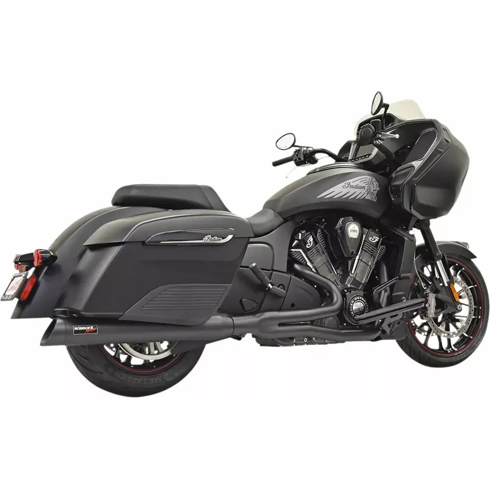 Bassani Road Rage 2-into-1-systemet til Indian kommer med stepped headpipes og en megafon-lyddæmper i sort. Den perfekte udstødning til rytteren, der vil have power og lyd.