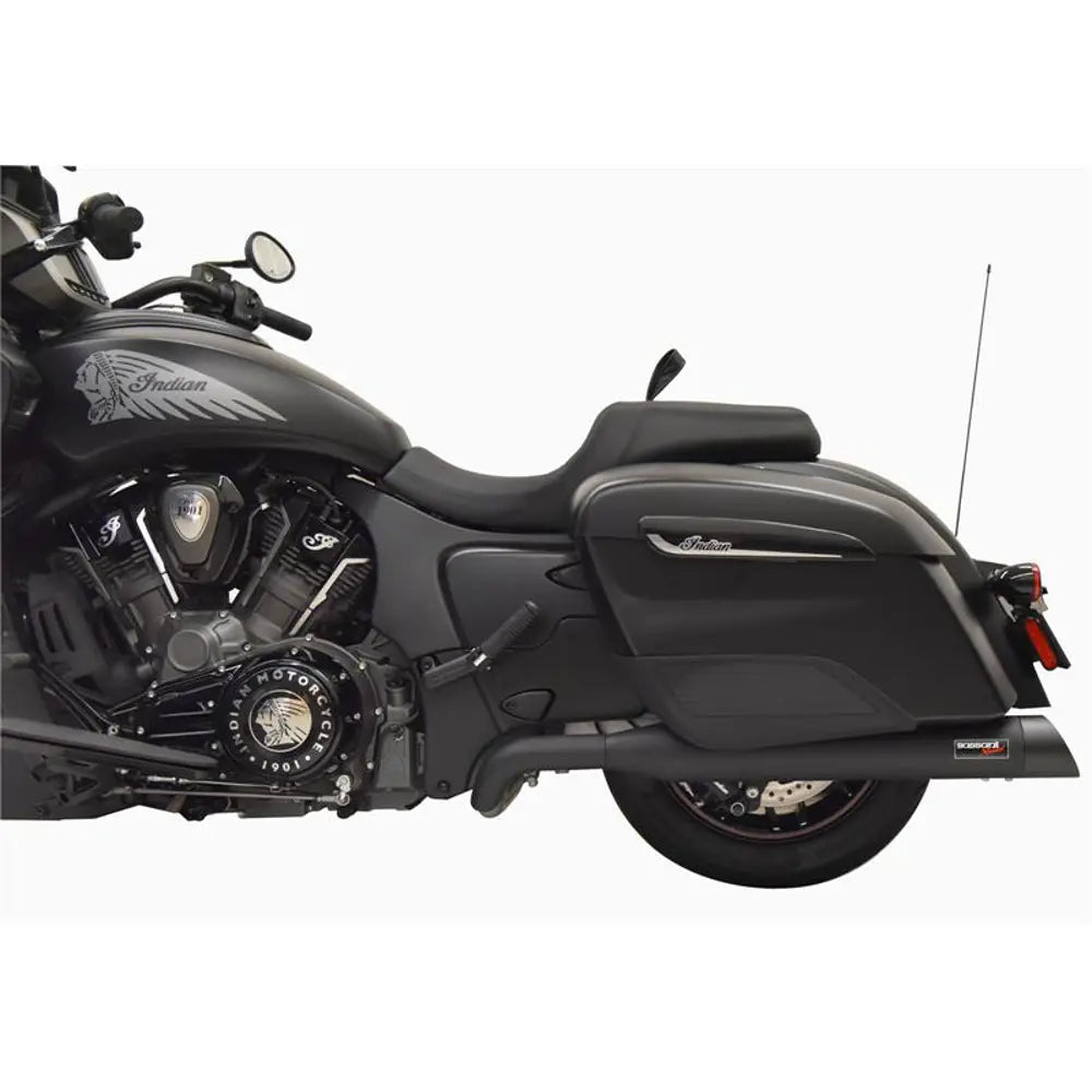Bassanis True Dual Performance-udstødningssystem til Indian er udviklet til at levere maksimal ydelse med lige lange hovedrør, 4" lyddæmpere med aftagelige baffler og en aggressiv lyd. Dette system øger effekten og giver din motorcykel et fedt udseende.
