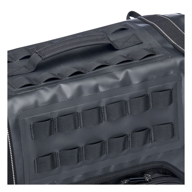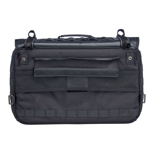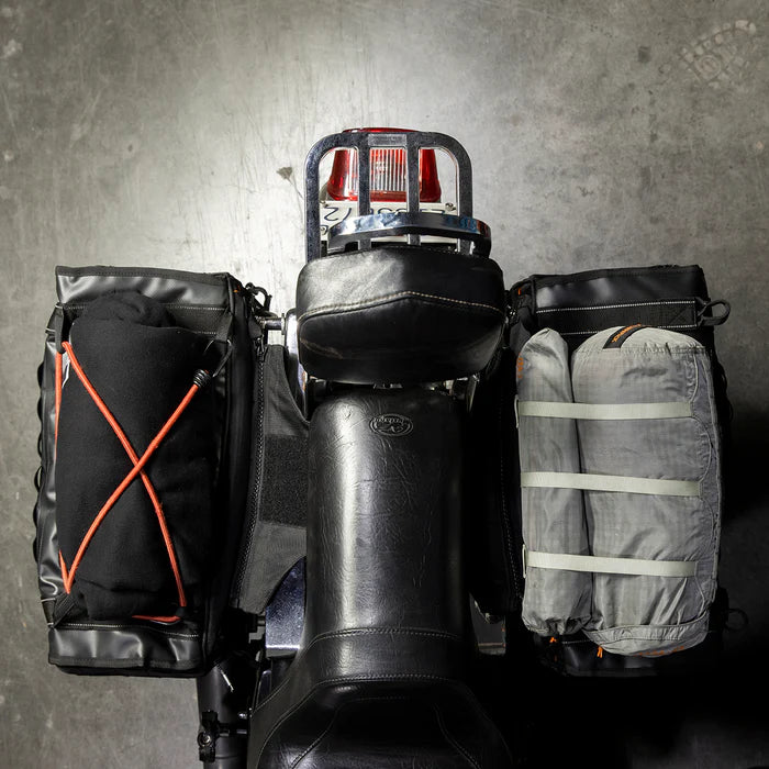 Biltwell EXFIL-36 sadeltaske-sættet er det største i EXFIL-serien og er lavet til motorcyklister, der har brug for maksimal opbevaringskapacitet. Hver taske rummer 36 dåser à 330 ml og monteres med en universal overkastbar gaffel, der passer under sædet og over skærmen. Taskerne er fremstillet af UV-behandlet 1680-denier ballistisk nylon med PVC-behandlede paneler og varmebestandige kanvasbunde. De er designet til at klare lange ture og barske forhold, samtidig med at de bevarer deres form og beskytter dit udstyr.