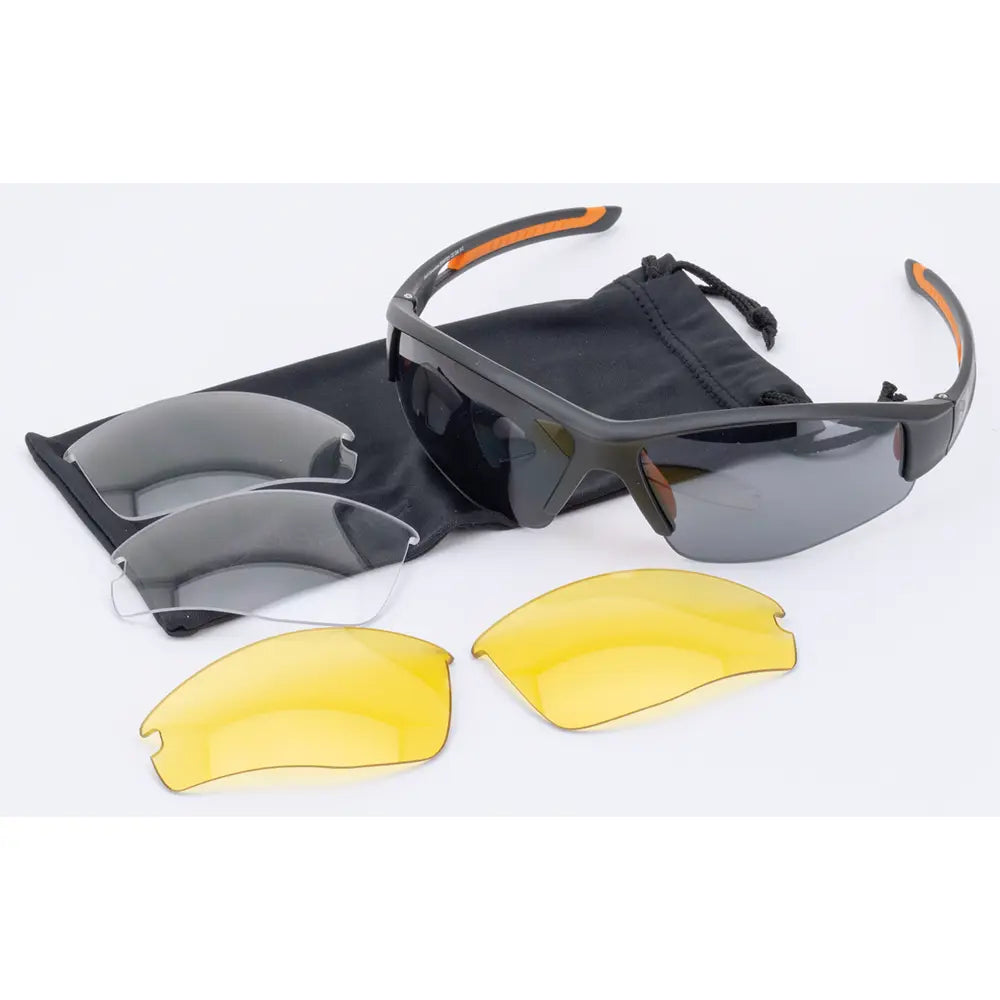 - 3 udskiftelige antidug-linser: Røget, gul og klar