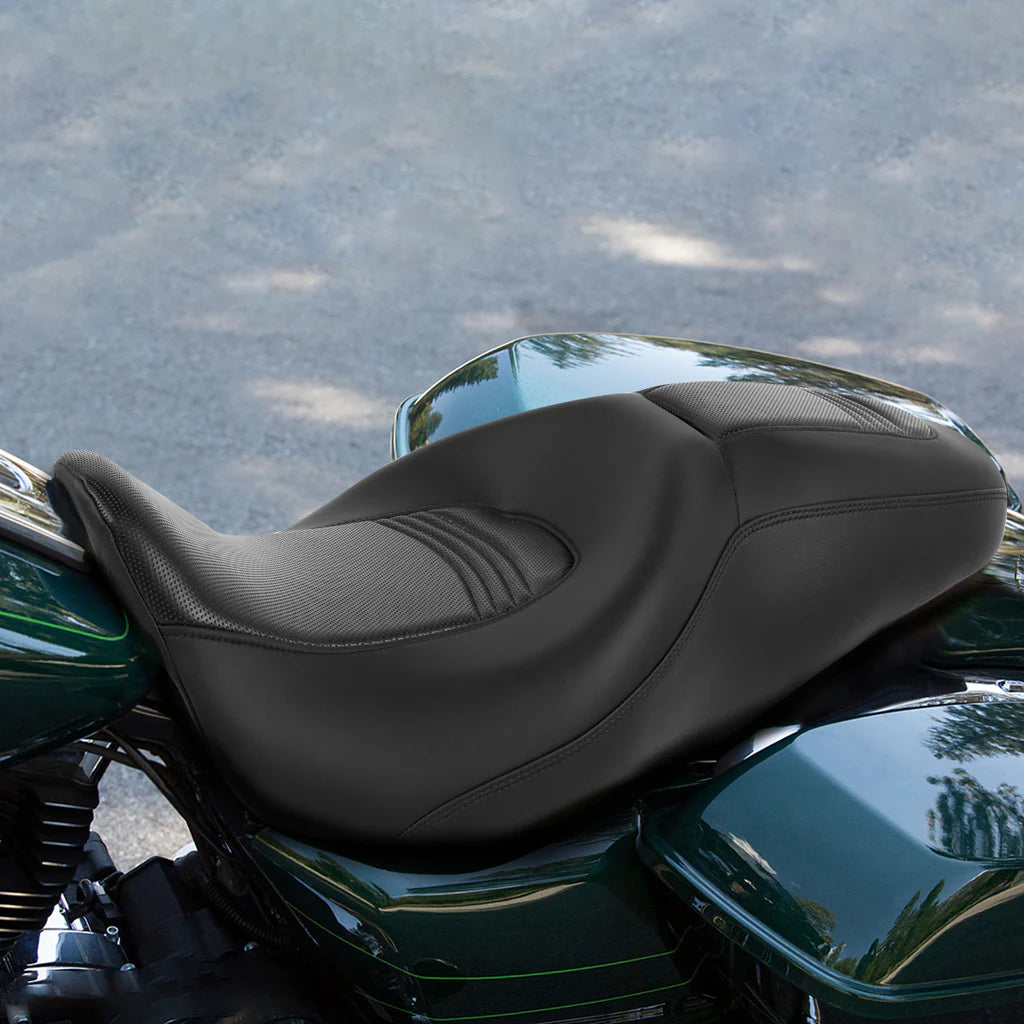 Et 2-up touring-sæde designet til længere ture. Det dybe førersæde giver fremragende støtte til lænden og bidrager til langvarig komfort, mens den generøse passagersektion sikrer en behagelig tur, selv på længere ture.