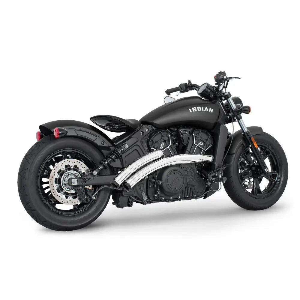 Lad din Indian-motorcykel brumme med Freedom Performance Radical Radius-udstødningssystem. Radical Radius-udstødninger har et stykke 2 1/2" (64 mm) ydre diameter 16 gauge heavy duty varmeskjold, der dækker headerne i hele 220 grader samt et tre-trins header-system for optimal hestekræfter og drejningsmoment.