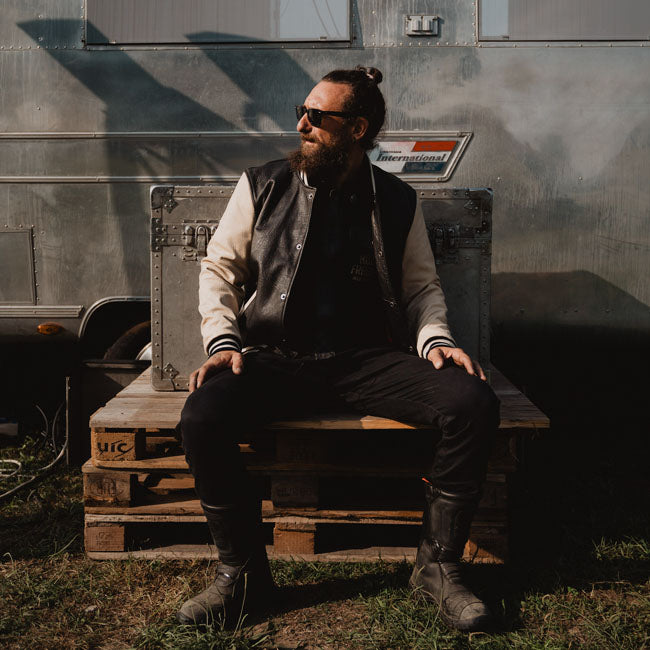 Varsity-jakken blander klassisk campus-cool med slidstyrke som læder. Det er et modigt, førsteklasses stykke tøj til ryttere, der gerne vil gøre indtryk.
