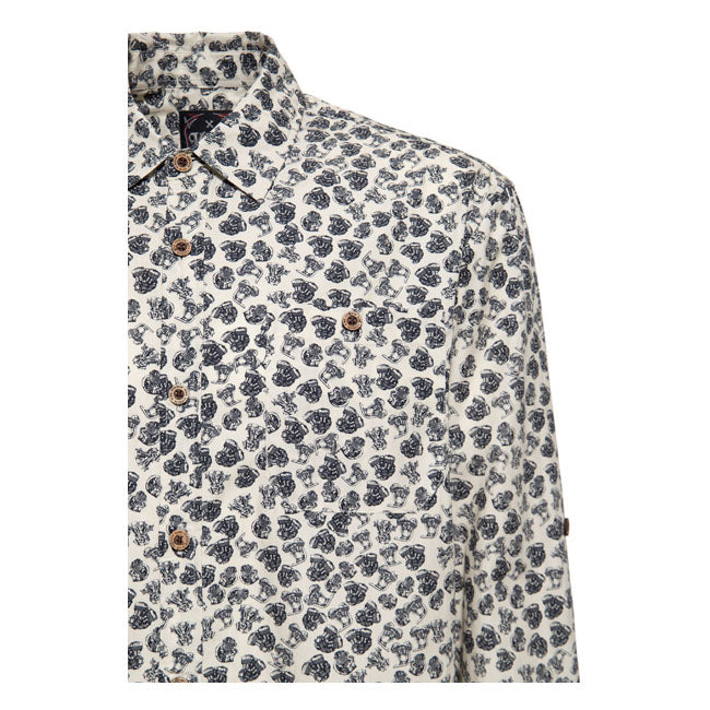 Langærmet button-up med all-over print og naturlige detaljer. En smule klassisk, en smule offbeat, lige som det skal være.