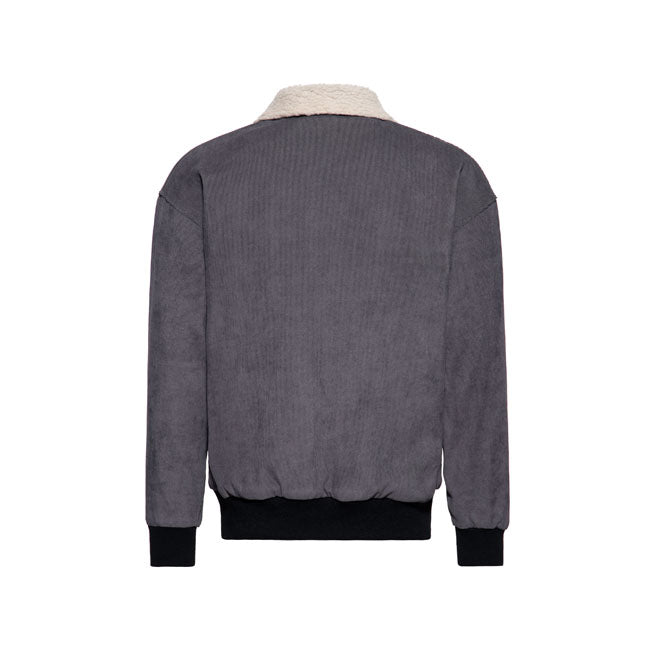 Fløjlsjakke med sherpakrave og lige præcis nok kant. Lynlås foran og lommer afrunder den med praktisk komfort.