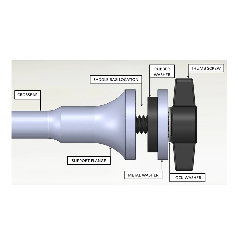 - Inkluderer: 1 tværstang, 2 støtteflanger, 2 metalskiver, 2 gummiskiver, 2 låseskiver, 2 fingerskruer
