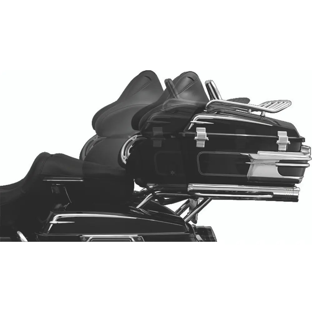 Med Kuryakyn Tour-Pak-relocator kan du flytte Tour-Pak fra 1" fremad til 3" bagud i forhold til standardpositionen. Justeringen er enkel med det værktøjsfri skyde- og låsesystem. Konstrueret med sammenkoblede aluminiumsstøtteplader og nylonglidere.
