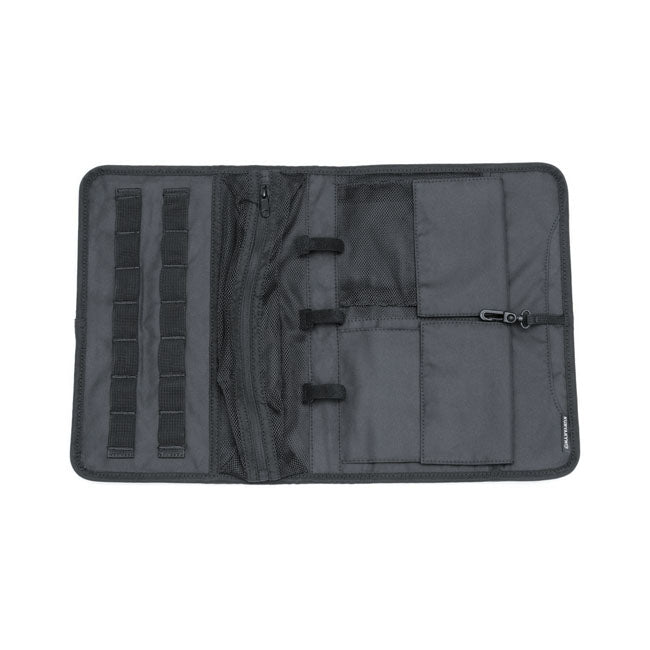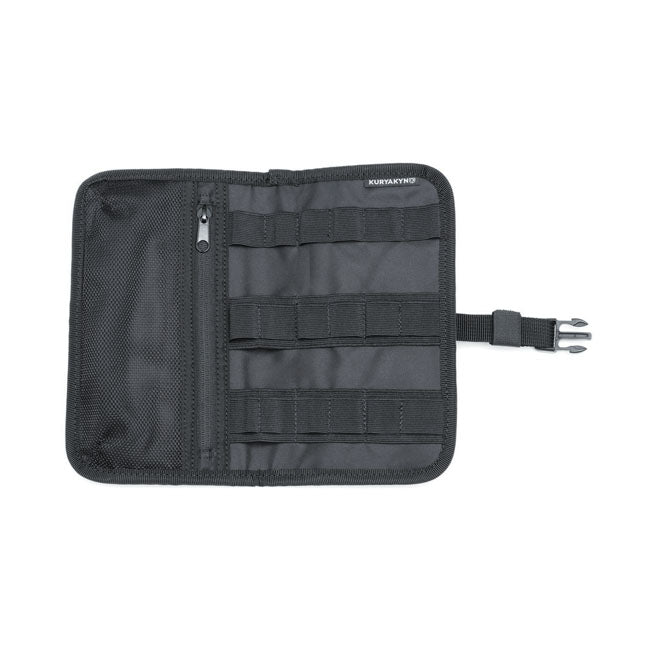 Kuryakyn Tour-Pak Lid Organizer Set holder dine vigtige ting pænt opbevaret og let tilgængelige i din Harley-Davidson Tour-Pak. Det er blevet redesignet for bedre sikkerhed og monteres nu med snap-tabs, der er forstærket med velcrolukninger. Med tre opbevaringslommer, et integreret MOLLE-panel og en aftagelig værktøjstaske/toilettaske er det den perfekte måde at holde styr på dit udstyr på hver tur.