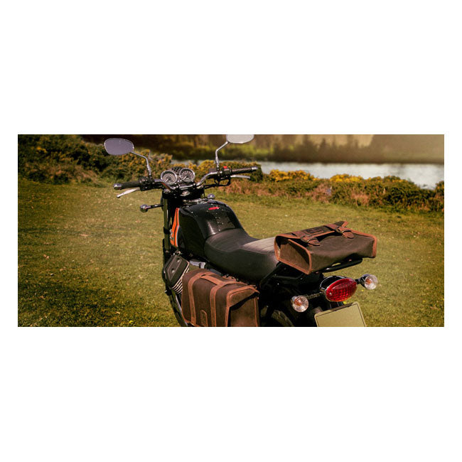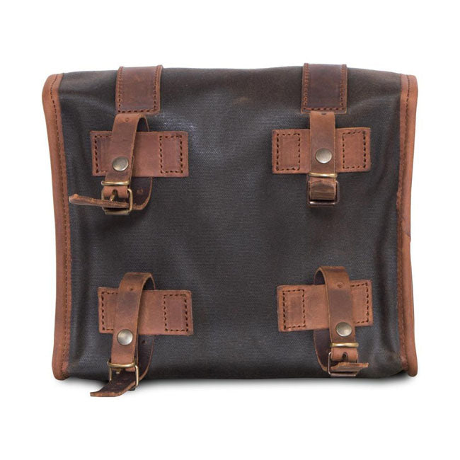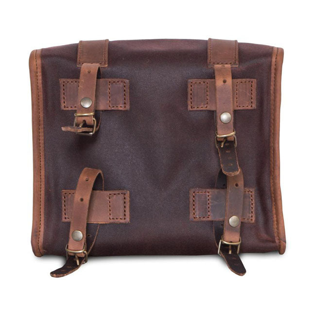 Mini Ammo vintage sadeltasken er en kompakt taske i retrostil, der er designet til klassiske og retro motorcykler. Den er håndlavet af 22 oz. voksbehandlet bomuldslærred og vegetabilsk garvet fuldnarvet læder og er holdbar, vandafvisende og har et vintage look, der ældes smukt.
