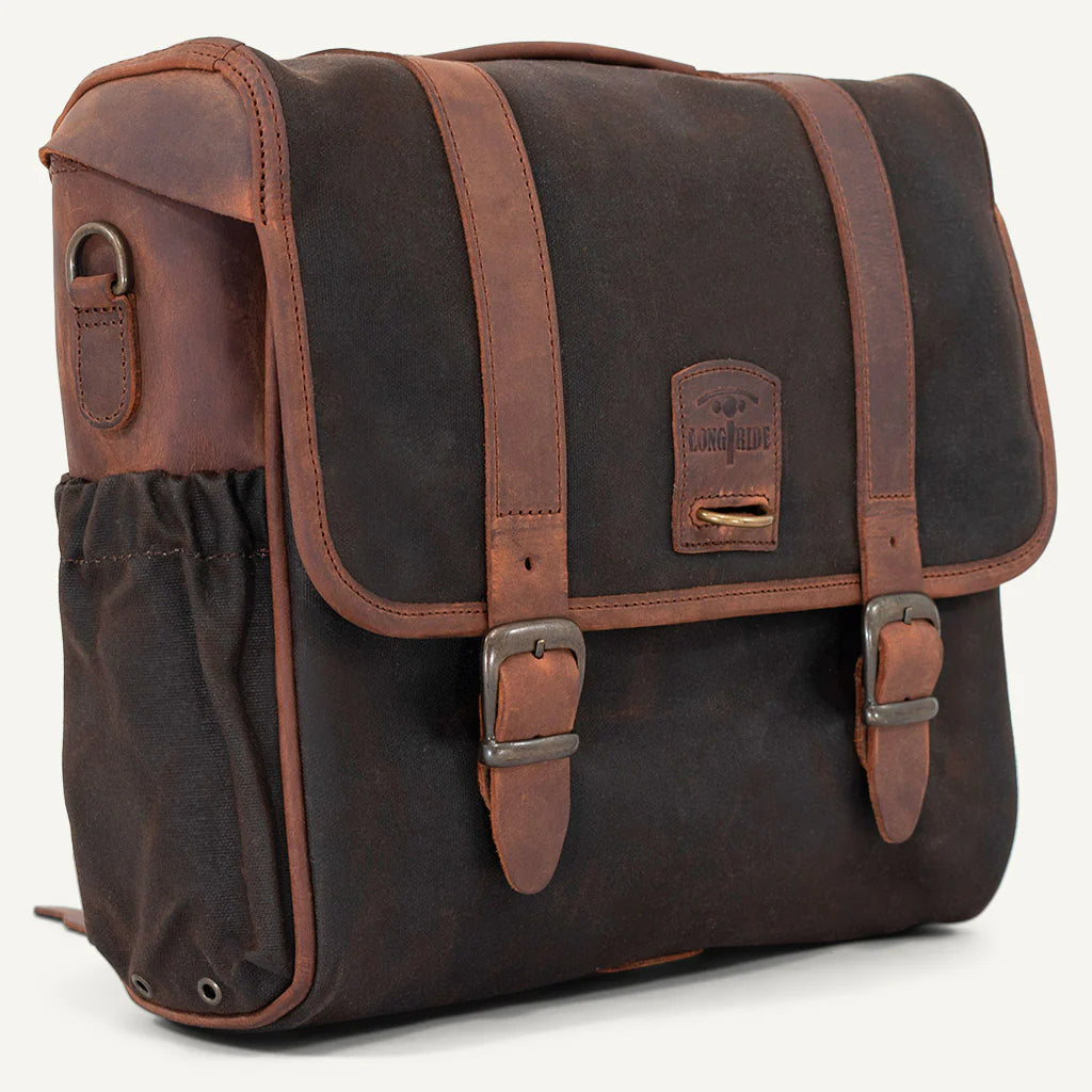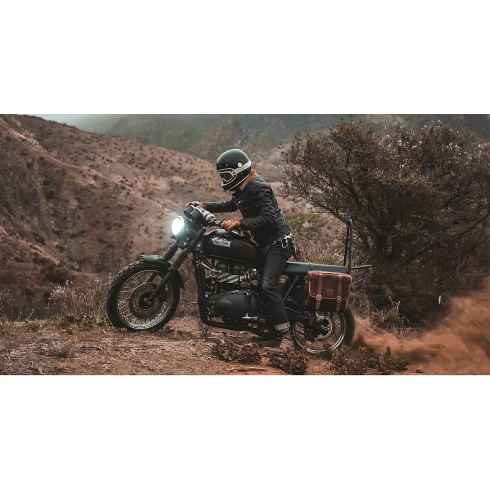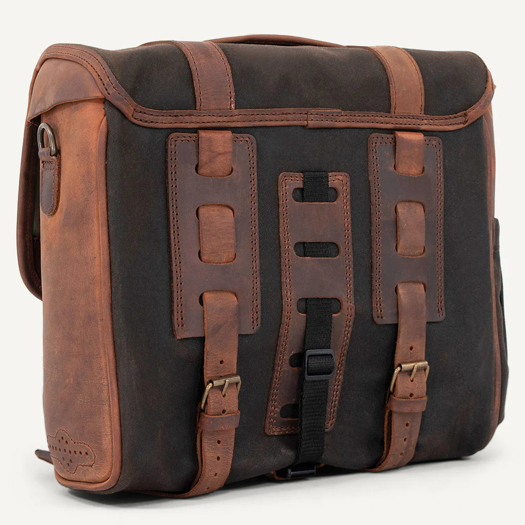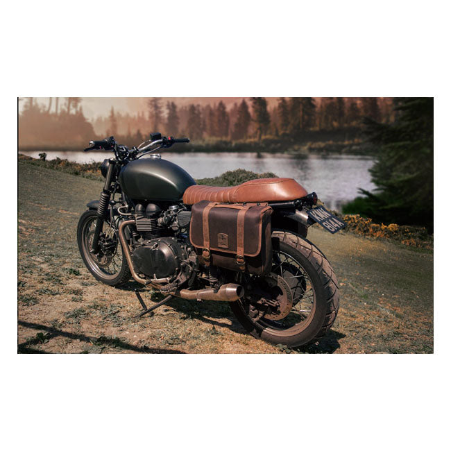 Racer vintage sadeltasken giver din motorcykel en tidløs retrostil med moderne funktionalitet. Håndlavet af vejrbestandigt voksbehandlet bomuld og tykt vegetabilsk garvet fuldnarvet oksehud.