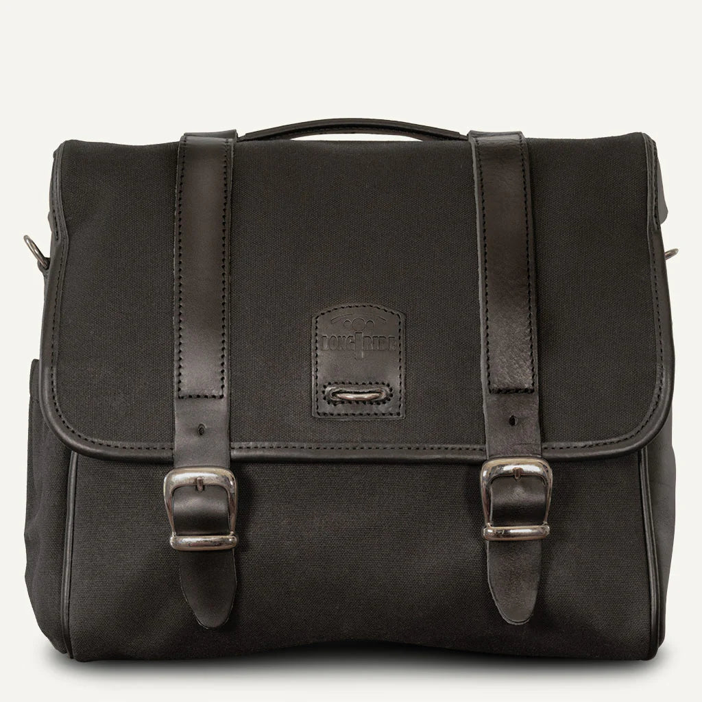Denne taske bruger Longride remsystem til universel montering og afmontering uden værktøj. Hver taske leveres med 3 remme på bagsiden med flere slidser, så tasken kan placeres perfekt på din motorcykel. Dette design giver dig mulighed for at montere din sadeltaske på enhver ramme, bagagebærer eller sadeltaskeholder fra enhver producent på få minutter. Racer-sadeltasken fås også med Click-On-systemet.