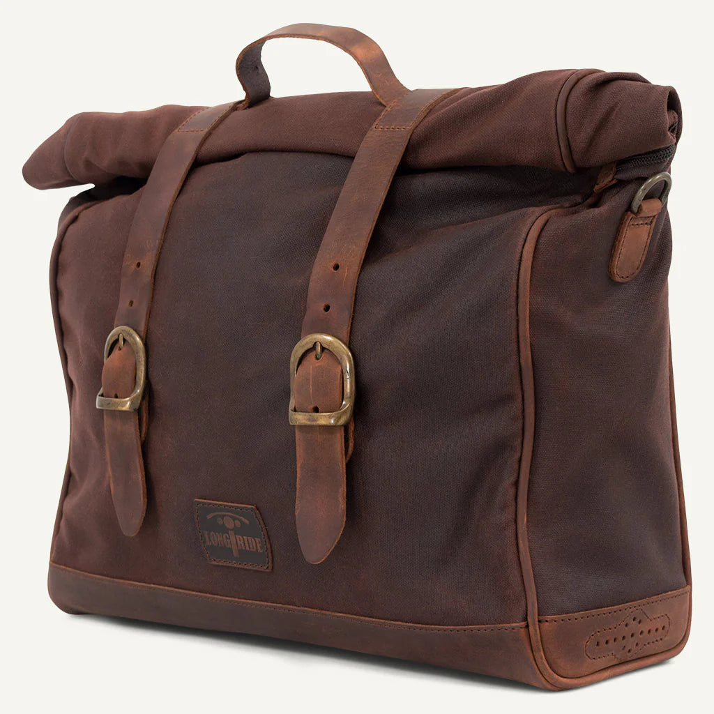Super Patriot Roll Top Click-On vintage sadeltaske er inspireret af de sadeltasker, der blev brugt af hæren under 2. verdenskrig. Tasken er fremstillet af fransk lærred af højeste kvalitet (22 oz) og belgisk vegetabilsk garvet læder.