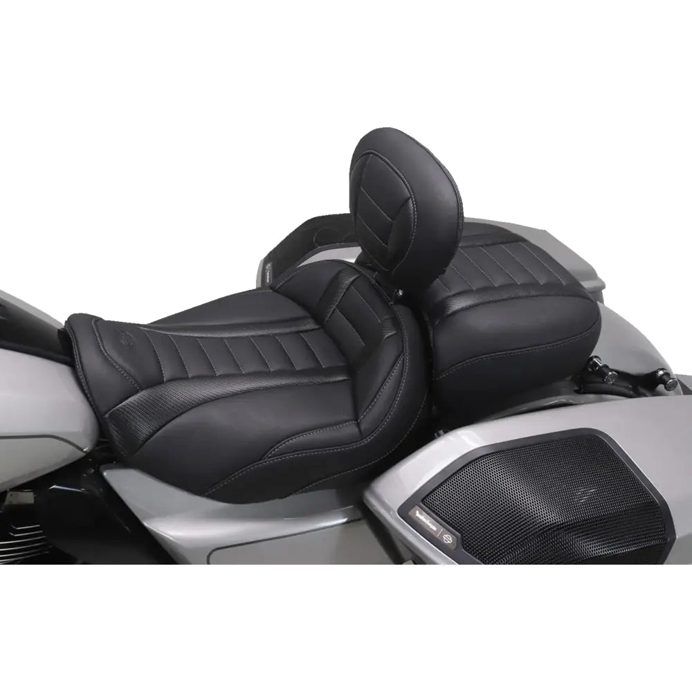 - Passer til Mustang Deluxe Touring Solo-sæde med ryglæn til Harley (sælges separat)