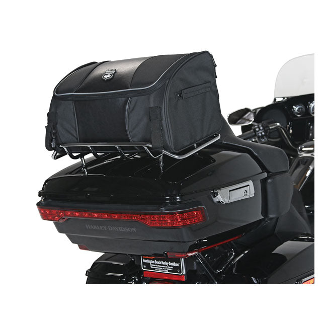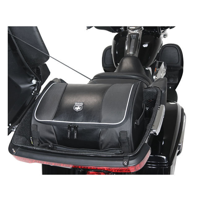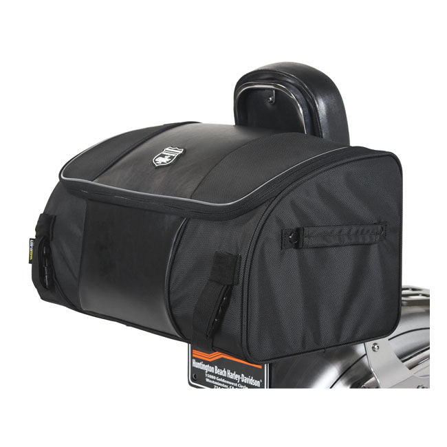 Route 1 Traveler Lite-tasken er en alsidig mellemstor bagage, der er designet til at give din motorcykel 35 liter sikker opbevaringsplads. Den er fremstillet af stift UltraMax-materiale for maksimal UV-beskyttelse og lang holdbarhed, holder sin form, selv når den er tom, og kan nemt monteres på bagagerum, bagagebærere eller sissy bars. Et vandtæt regnslag, hurtigudløsende stropper og praktiske bærehåndtag gør den praktisk både på og af motorcyklen.