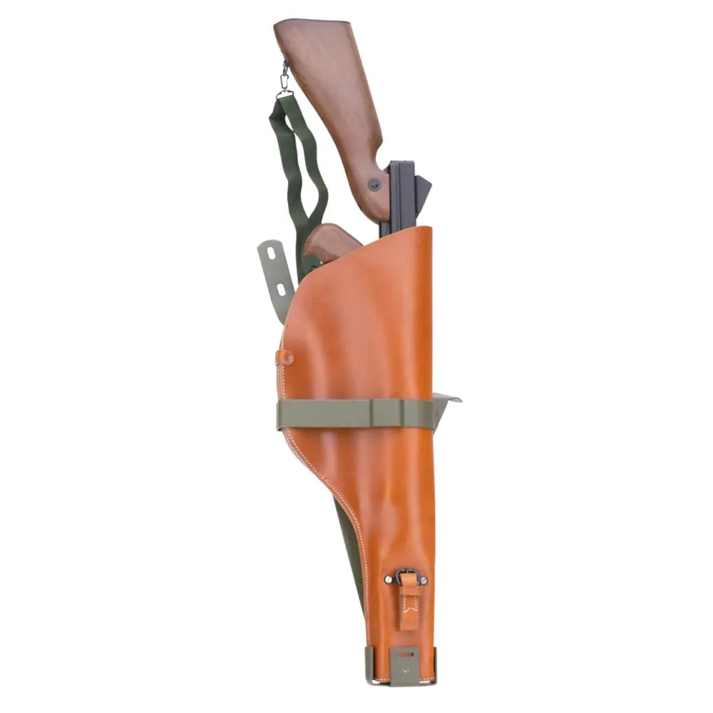 The Samwel rifle carrier bracket and scabbard are faithful reproductions of the original found on 45CI military Harley-Davidson models. The bracket mounts to the right side of the front fork, just like the original WW2 setup.
