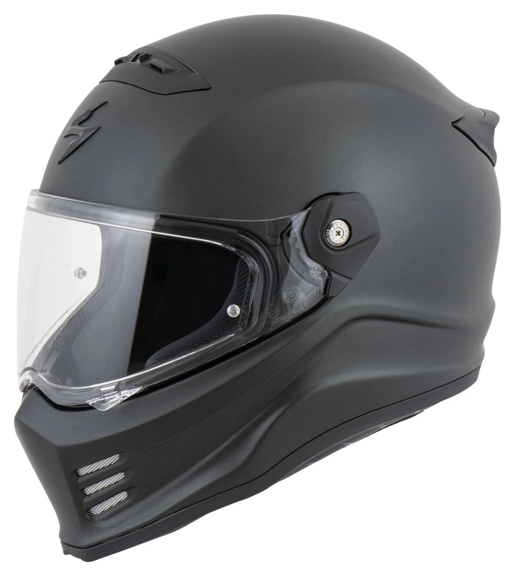 Skaberen af den originale bad-ass Scorpion Covert/Combat-hjelm har nu udviklet en full face-version, Covert FX! Denne hjelm har den samme kantede stil og funktionalitet, som motorcyklisterne er kommet til at forvente fra Scorpion Helmets, men med ekstra fordele i form af bedre beskyttelse og komfort. Covert FX er omhyggeligt fremstillet af de nyeste glasfiber-, aramid- og polyresinfibre og har en overlegen styrke, samtidig med at den er ekstremt let. Den lavprofilerede skal er aerodynamisk afstemt og sikrer en optimal køreoplevelse, uanset om du pendler i byen eller begiver dig ud på langdistanceture. Og med sin ECE R22.06-godkendelse kan du stole på dens sikkerhedsstandarder.