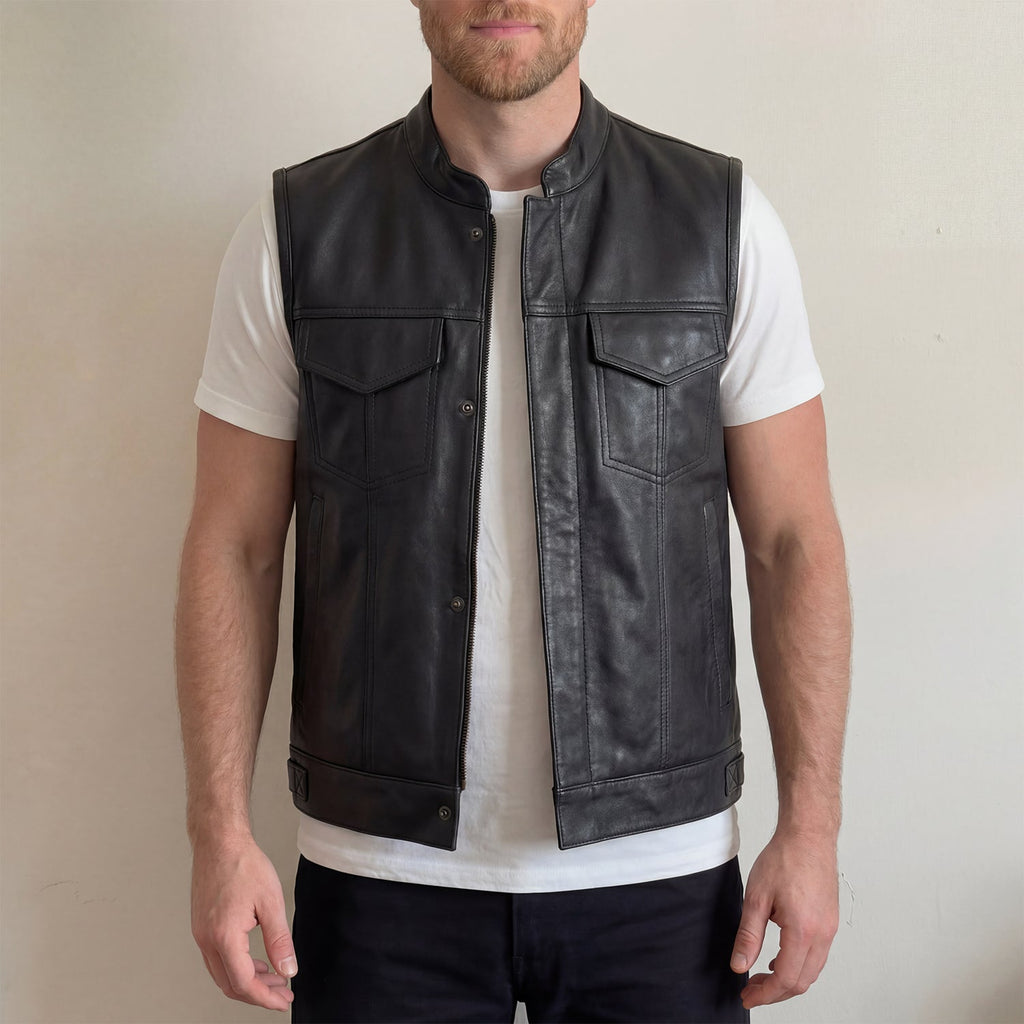 Denne vest holder fast i sine bikerrødder. Fuldt bøffellæder, der føles præcis som en rigtig lædervest til motorcyklister skal føles. Meshforingen er en hjælp på varmere dage, og lommekonfigurationen dækker dine behov, så du ikke behøver at proppe alt ned i dine jeans.