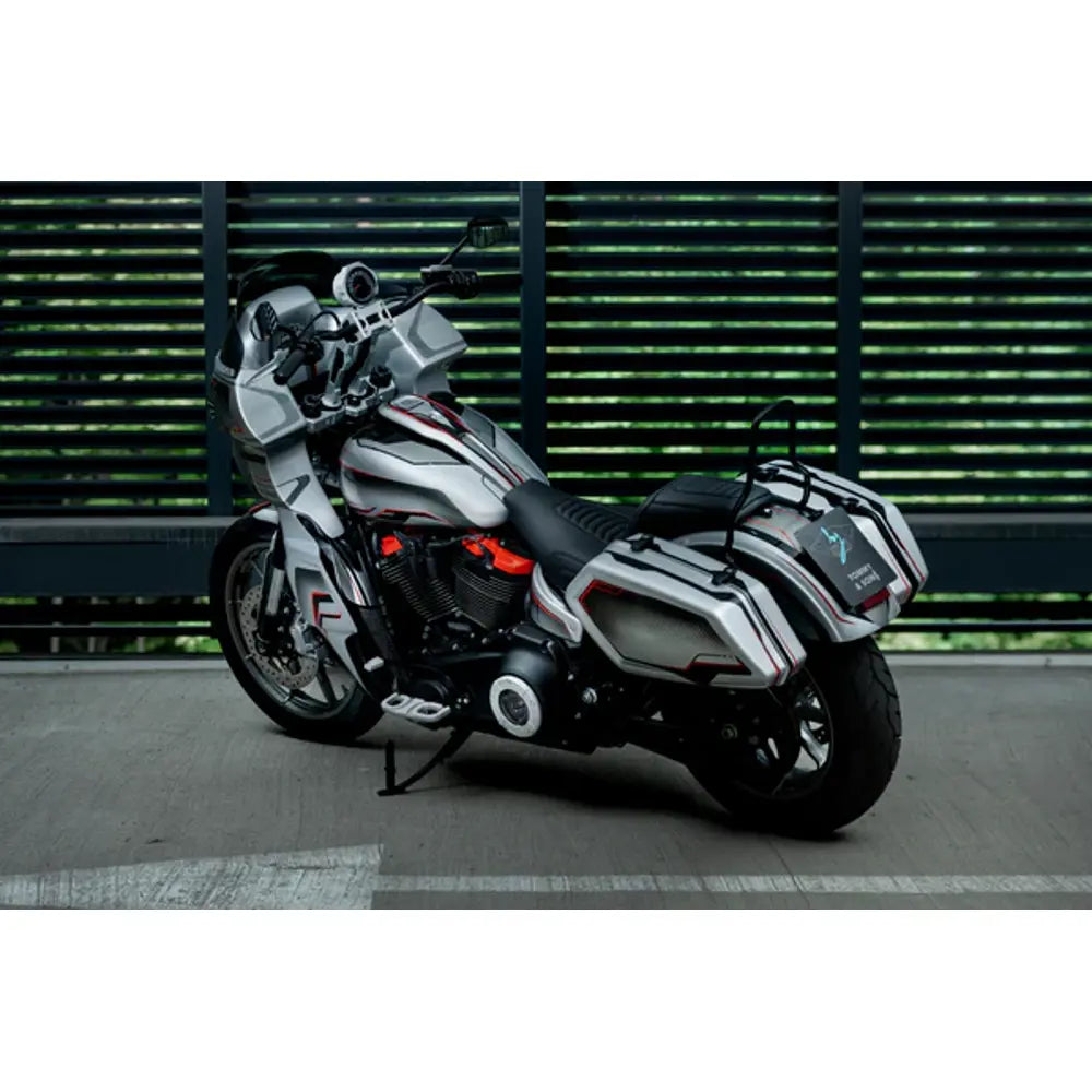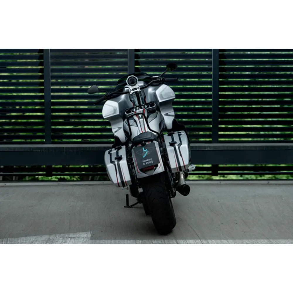 Tommy & Sons Inception-sadeltaskerne giver din Harley Dyna eller Softail klubattitude og praktiske egenskaber fra den virkelige verden. De er bygget af robust glasfiber og klar til at blive malet, og de har en god pasform, solid opbevaring og et dristigt clubstyle-look.
