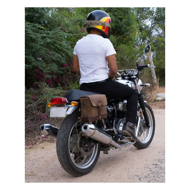 Trip Machine motorcykel messenger tasken er inspireret af den klassiske schweiziske ammunitionstaske fra 2. verdenskrig. Denne taske er håndlavet af næsten uforgængeligt 2,5 mm kraftigt læder i selekvalitet og er bygget til at holde hele livet, samtidig med at den udvikler en rig patina med brug. Den karakteristiske forvitrede finish giver den et tidløst udtryk, og det universelle monteringssystem gør det muligt at montere og afmontere den hurtigt på din motorcykel. Når du ikke er på motorcyklen, er den behagelig at bære på skulderen, og den har en rummelig lomme med ruskindsfoder indeni, så du kan holde styr på dine vigtigste ting.