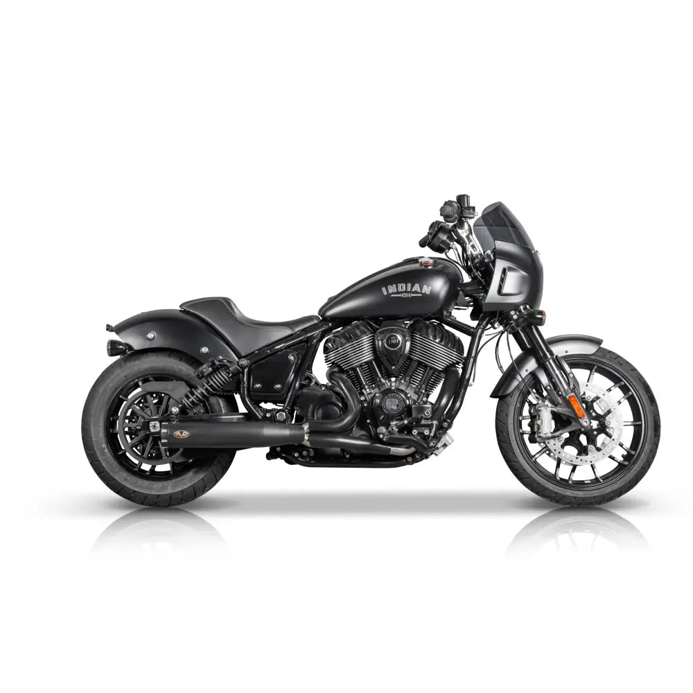 Bygget til kraft, stil og gadelovlighed i hele Europa. V-Performance 2-into-1-udstødningen til Indian har et moderne design i klubstil, og dette system leverer både ydelse og overholdelse takket være den indbyggede katalysator og dB Killer.